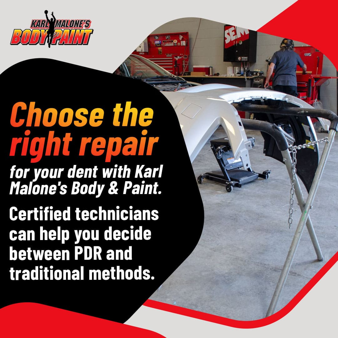 Based on the findings of the damage assessment, Karl Malone's Body & Paint provides clients with both sorts of repairs. Professional evaluation identifies paint condition, metal integrity, and accessibility factors determining appropriate repair methods.